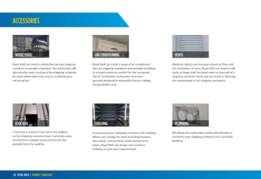 Royal Wolf can install a whirly bird on your shipping Royal Wolf can install a range of air conditioners Minimise odours and increase natural air flow with Electricity allows the provision of lighting Padlocks are a necessity on almost all shipping By choosing to install a door as an accessory on