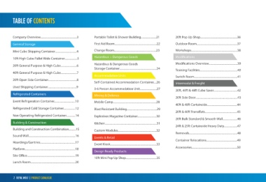 Storage Container.....................................................24 Training Facilities......................................................40 portable building products to suit your every need. containers to create a tailor made solution to meet