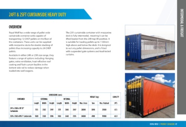 Royal Wolf heavy duty dry bulk and smooth Optional Features Include: Royal Wolf has a wide range of pallet wide The 25ft curtainside container with mezzanine